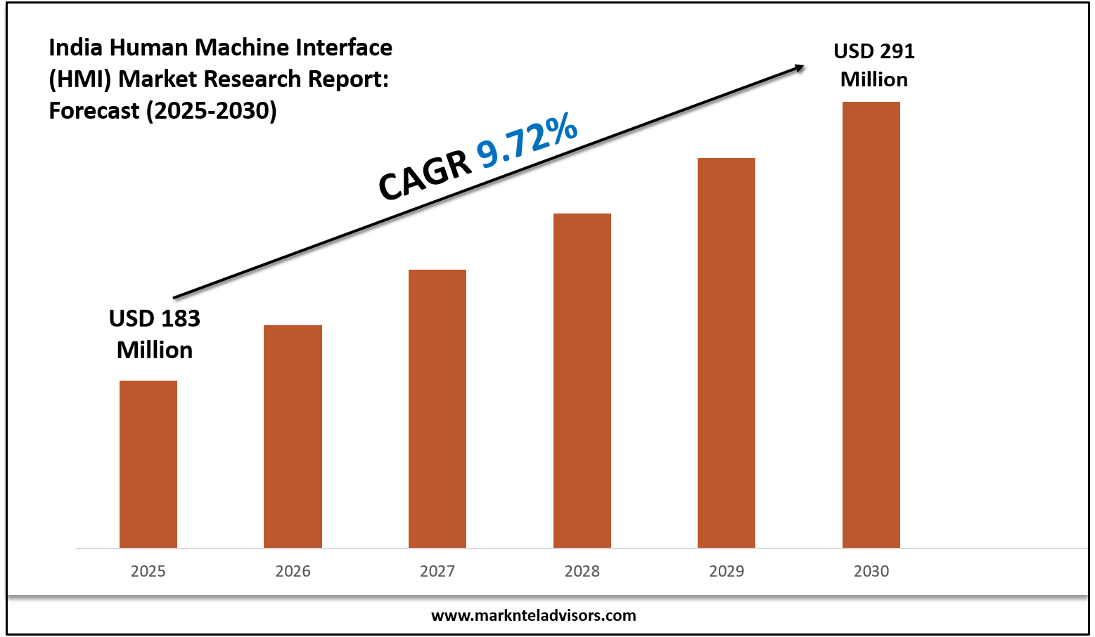 The India Human Machine Interface (HMI) Market is poised for substantial growth, estimated to increase from approximately USD 183 million in 2025 to an impressive USD 291 million by 2030, reflecting a compound annual growth rate (CAGR) of 9.72%. Key drivers propelling this growth include the rapid incorporation of Industrial Internet of Things (IIoT) solutions across various sectors such as manufacturing, automotive, and energy. As enterprises seek to enhance efficiency through automation and real-time monitoring, the demand for advanced HMI systems is escalating, further transforming how industries operate.